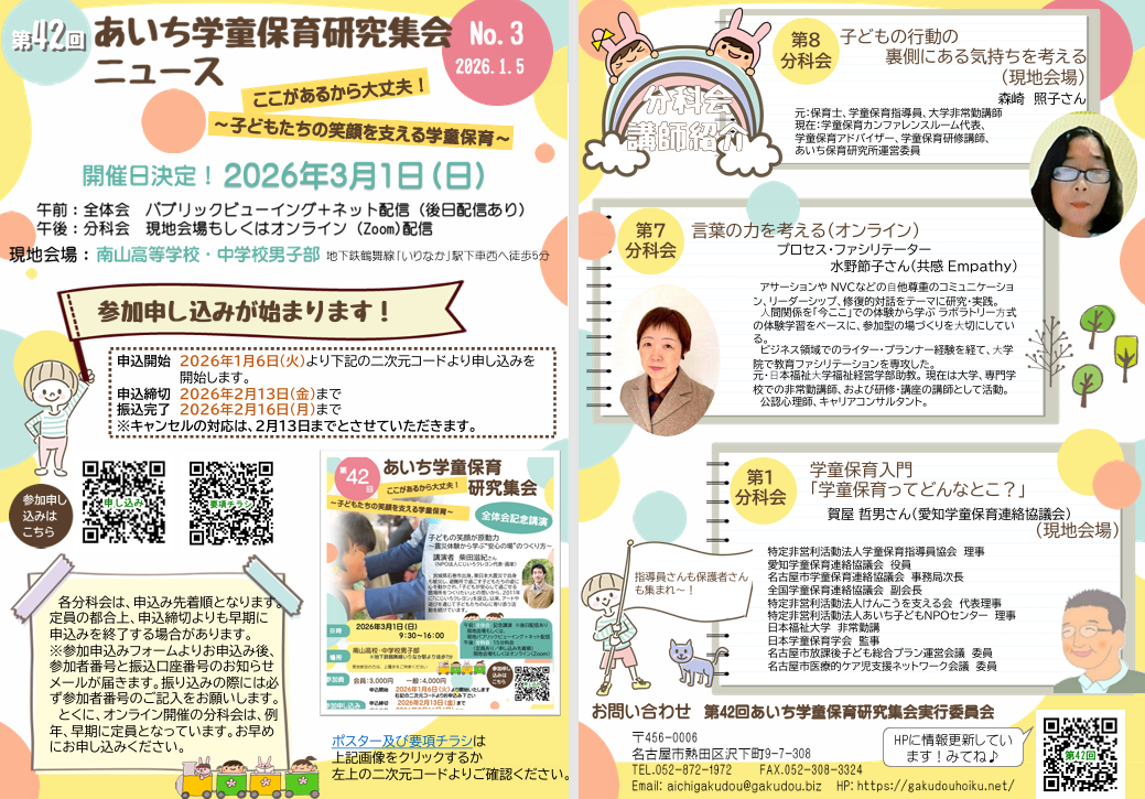 第42回あいち学童保育研究集会ニュースNo.3を発行しました!